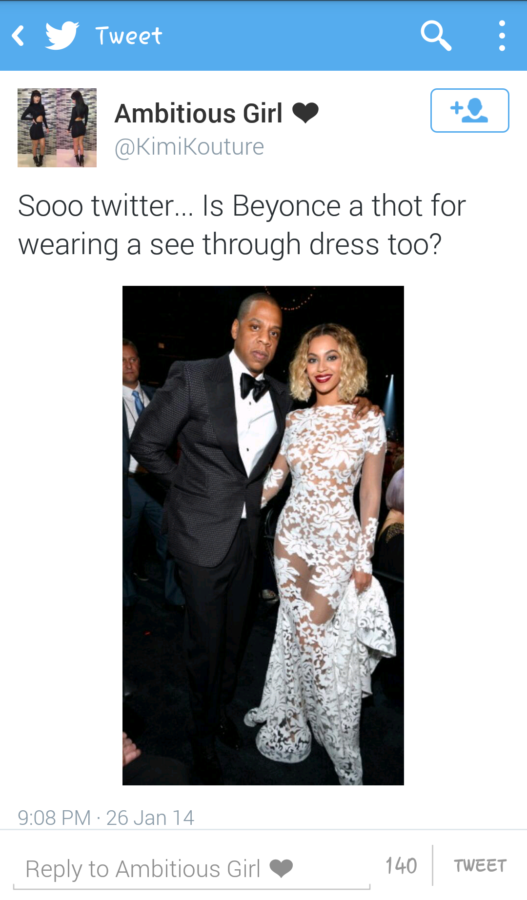 Are you serious right now? I mean really? For real? Well of COURSE the BeyHive attacked. And then she tweeted this (among other praises to Michael Costello for his dress).